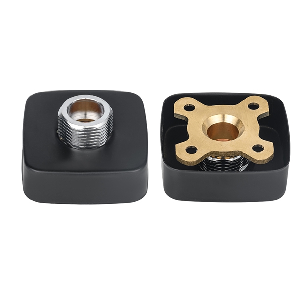 Placa de torneira de chuveiro quadrada preta. Seu objetivo principal é fornecer uma base resistente, plana e fácil de instalar para torneiras montadas na parede. O produto adota a estrutura composta de latão e aço carbono: a força principal e as peças de conexão que estão em contato direto com a parede e a interface das torneiras usam latão para garantir resistência à corrosão a longo prazo e estanqueidade da conexão; Como principal estrutura de suporte, o corpo da placa é feito de aço carbono de alta resistência, o que proporciona a rigidez de suporte necessária ao conjunto e evita deformações devido a tensões de longo prazo. A superfície do corpo da placa é tratada por galvanoplastia e outros processos, apresentando aspecto dourado e fácil de limpar. Ele é projetado como um quadrado padrão com um orifício de instalação predefinido para combinar com acessórios de torneira comuns e simplificar o processo de instalação.