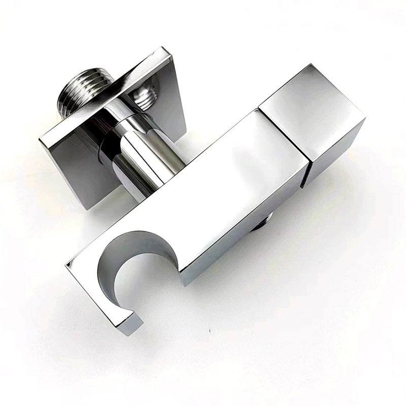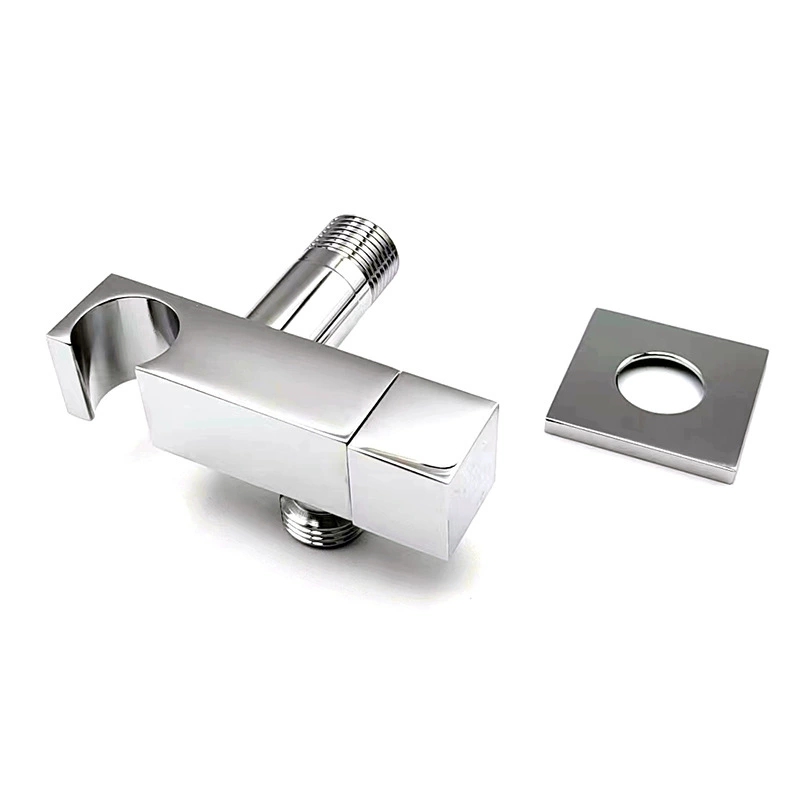 Válvula de ângulo quadrado de latão sólido espessado com suporte de chuveiro, válvula de parada reta de 1/2" para spray de bidê e chuveiro portátil, encaixe de encanamento de banheiro