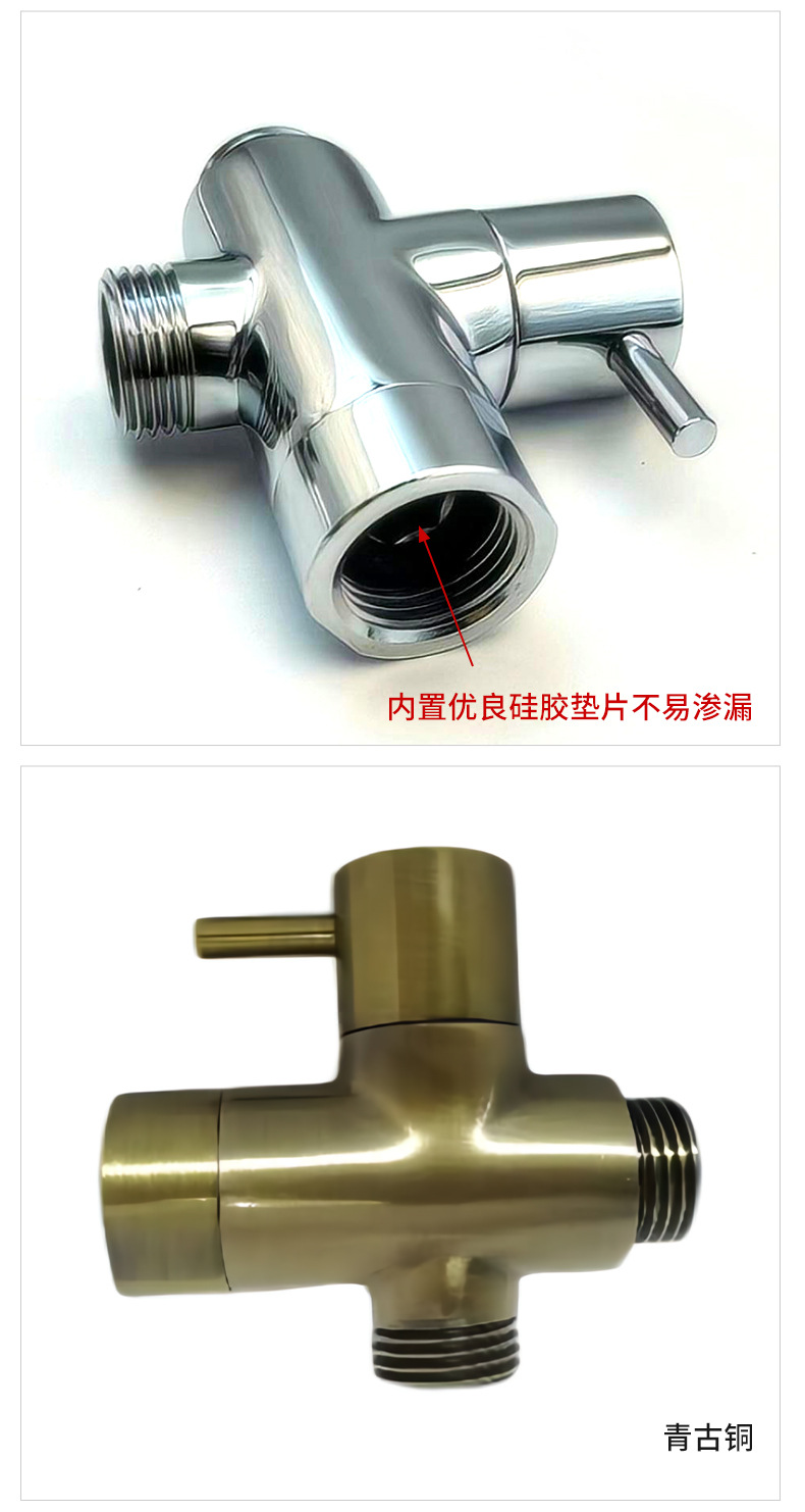 Ele é projetado com especificações de rosca padrão internacional e uma estrutura compacta para caber em mangueiras de chuveiro comuns, chuveiros de mão e saídas de água de parede, simplificando o processo de instalação e realizando a alternância livre entre diferentes saídas de água (como chuveiro superior e chuveiro de mão). Sua estrutura robusta garante um uso estável a longo prazo sem deformação, combinando perfeitamente com os estilos de banheiro modernos e proporcionando um efeito de instalação elegante e sofisticado.