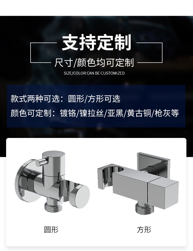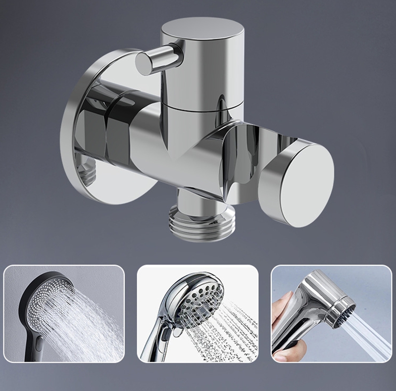 Seu objetivo principal é fornecer uma solução multifuncional, à prova de vazamentos e que economiza espaço para instalação de chuveiro de mão/pulverizador de bidê em banheiros, integrando conexão de saída de água, adaptador de cotovelo e suporte de suporte em um design compacto. O produto adota uma estrutura de latão sólido premium: o canal, as juntas roscadas e as peças de suporte de carga que entram em contato direto com a água e a parede são feitas de latão de alta pureza para garantir resistência à corrosão ao longo da vida, prevenção de ferrugem e vazamento zero de água. A superfície passa por rigorosos processos de polimento e cromagem, apresentando acabamento liso e brilhante, resistente a manchas de água, impressões digitais e fácil de limpar com apenas um pano.