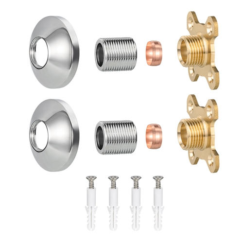 Este kit de montagem de chuveiro redondo serve para ambientes de banheiro. Seu objetivo principal é fornecer uma base robusta, plana e fácil de instalar para torneiras montadas na parede. O produto adota a estrutura composta de latão e aço carbono: a força principal e as peças de conexão que estão em contato direto com a parede e a interface das torneiras usam latão para garantir resistência à corrosão a longo prazo e estanqueidade da conexão; Como principal estrutura de suporte, o corpo da placa é feito de aço carbono de alta resistência, o que proporciona a rigidez de suporte necessária ao conjunto e evita deformações devido a tensões de longo prazo. A superfície do corpo da placa é tratada por galvanoplastia e outros processos, apresentando aspecto dourado e fácil de limpar. Ele é projetado como um quadrado padrão com um orifício de instalação predefinido para combinar com acessórios de torneira comuns e simplificar o processo de instalação.