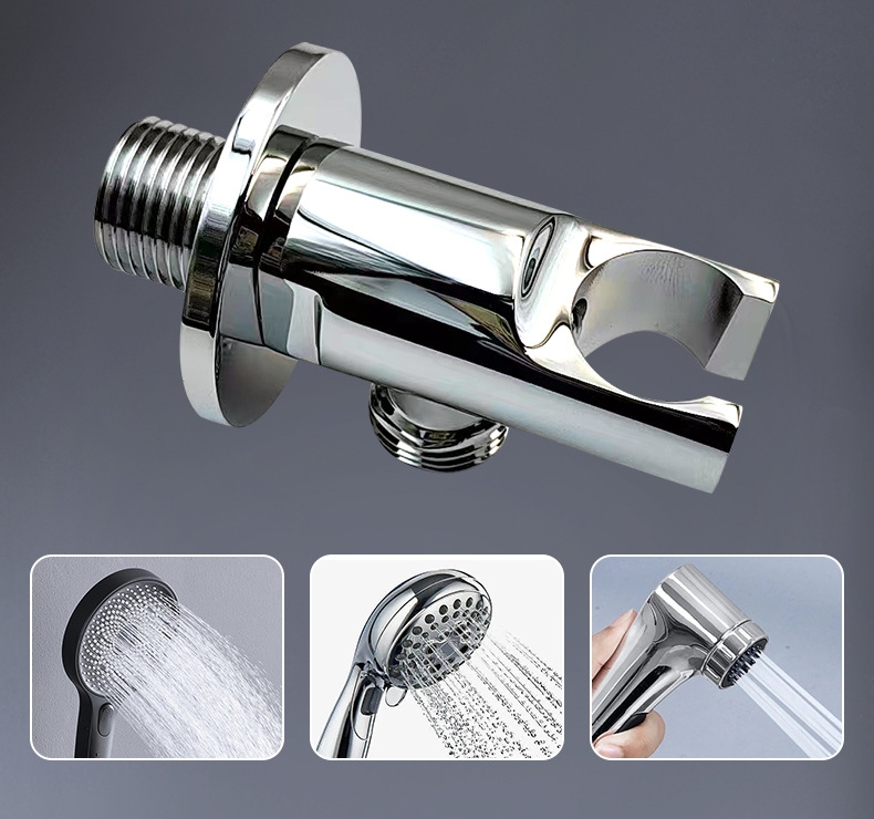 Seu objetivo principal é fornecer uma base de parede resistente, durável e fácil de instalar para chuveiros de mão ocultos. O produto adota uma estrutura de latão sólido de alta pureza: as principais peças de suporte de força e de conexão que estão em contato direto com a parede e a interface do chuveiro usam latão premium para garantir resistência à corrosão a longo prazo, resistência à ferrugem e estanqueidade da conexão; A superfície do produto é tratada por processos de cromagem e polimento, apresentando aspecto cromado brilhante, antiincrustante e fácil de limpar. Ele é projetado com especificações de rosca padrão e uma estrutura de montagem predefinida para caber em acessórios comuns de chuveiros de mão, simplificando o processo de instalação e garantindo um efeito de instalação limpo e bonito.